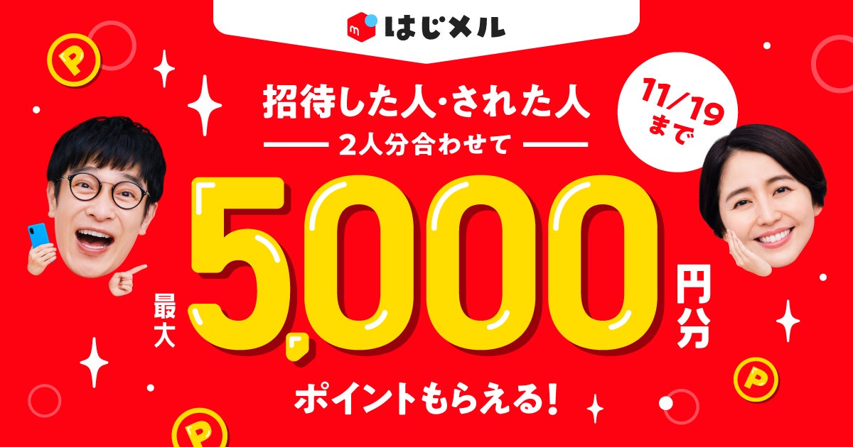 メルカリ、招待した人・された人、2人分あわせて最大5,000円分のメルカリポイントがもらえる「10-11月はじメル招待キャンペーン」を実施