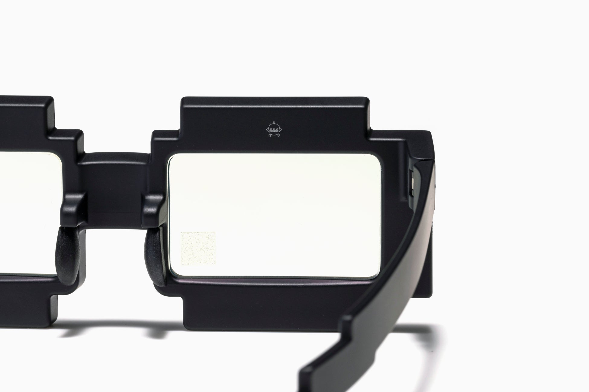 レンズには視界に干渉しない位置に、ジェフのメガネに描かれているドット画をすりガラス加工で再現。