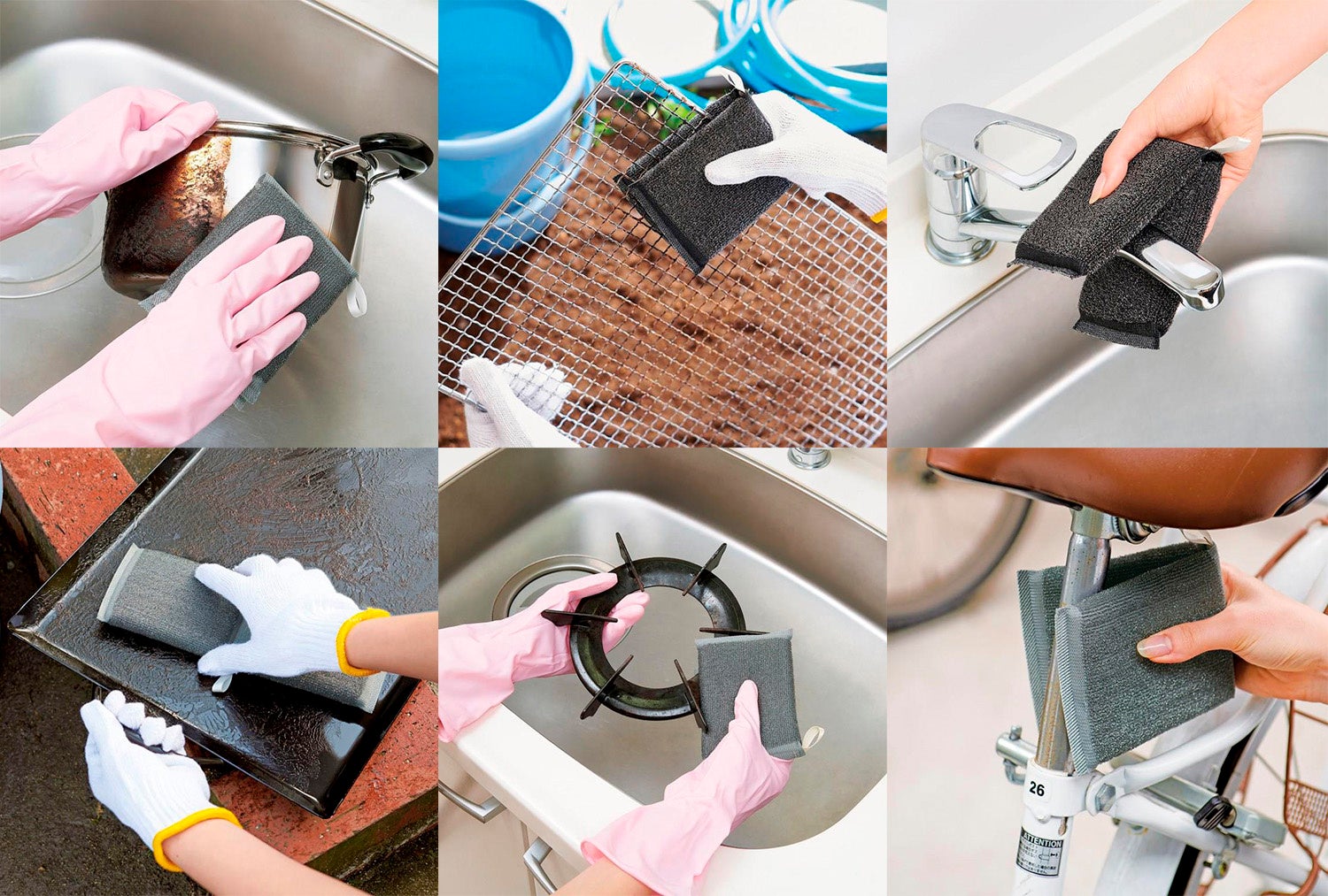 焦げ付いた鍋や、フライパンの底、コンロの五徳、水道の蛇口をキレイに。