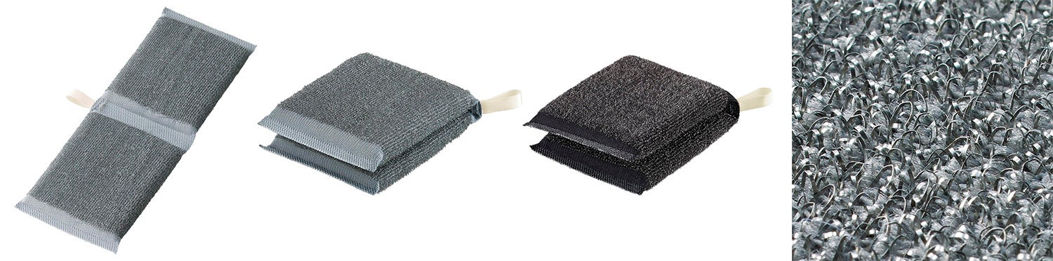 そんなお悩みを解決!ステンレス加工を施した素材の「はさんでゴリゴリ!コゲ取りタワシ」ではさんで、表・裏を同時にキレイにします。