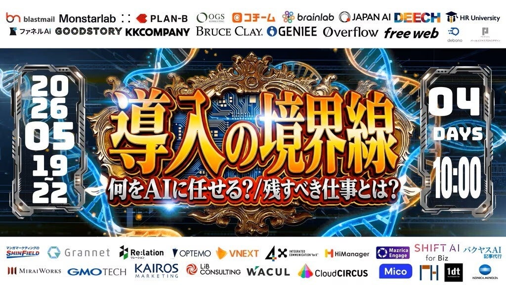 コミュニケーションプラットフォーム「Re:lation(リレーション)」を提供し、6,000社以上(※1)の導入実績を誇る株式会社インゲージ(本社:大阪府大阪市、代表取締役社長:和田 哲也)は、2026年5月19日(火)~22日(金)に株式会社マーケメディア(本社:東京都品川区、代表取締役:三浦 和広)が主催するウェビナー「【導入の境界線】 ~何をAIに任せる? 残すべき仕事とは?」に登壇することをお知らせいたします。