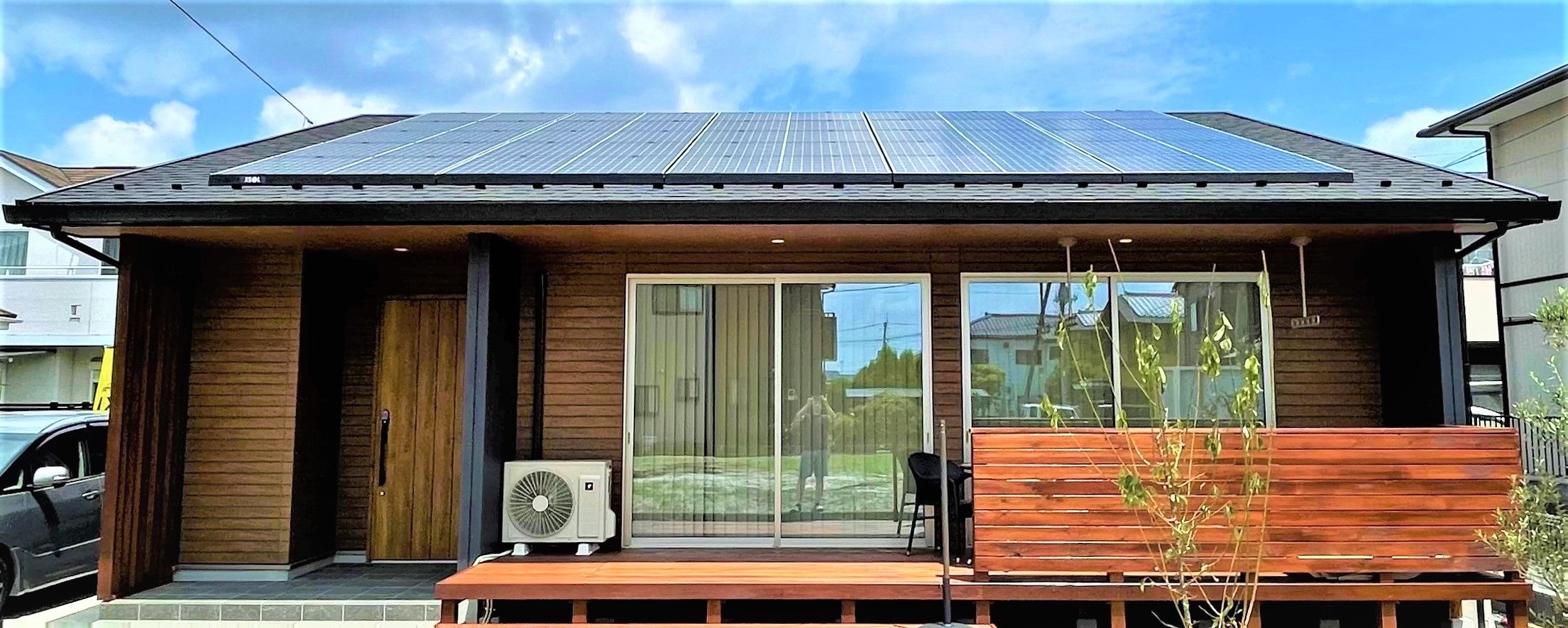 脱炭素の取り組みは、商品だけでなく展示場においても積極的に導入しています。2022年1月にオープンした「IKI前橋けやき展示場」では、最大となる27坪3LDKガレージ付プランのモデルハウスを展示。大型の切妻屋根には大容量9.12kWの太陽光パネルを搭載し、「初期費用ゼロで始める太陽光電力プラン」として定評ある「IKIのいきいきでんき」により再生可能エネルギーを余すことなく活用しています。