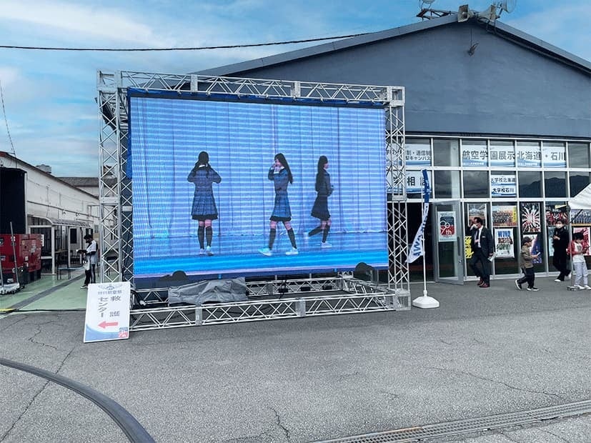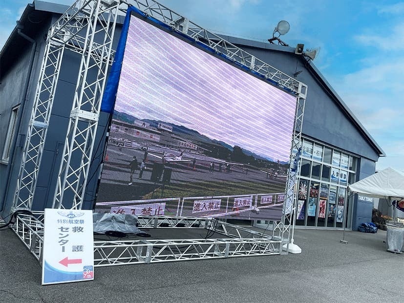 2022年10月8日~10日に日本航空高等学校で行われた建学90周年を記念した祭り「建学90年特別航空祭」にLEDビジョンを導入しました。