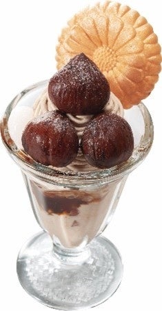 渋皮栗のモンブランあいすに使用する、渋皮栗あいすは、渋皮入りで、栗の香りを存分に楽しめる逸品です。マロンホィップクリームと合わせることでモンブラン風仕立てにしました。