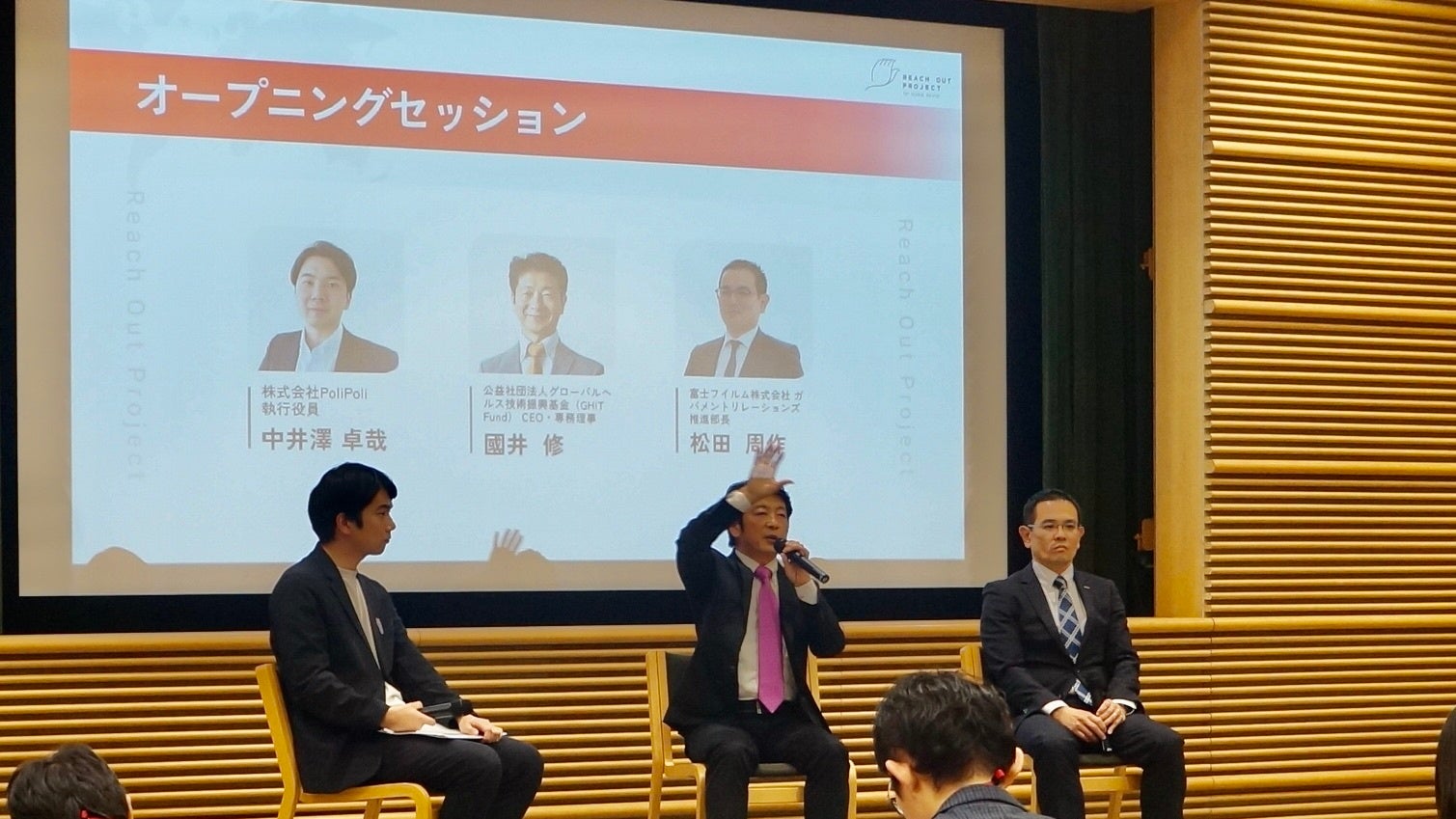 前財務大臣の加藤勝信議員、国民民主党代表の玉木雄一郎議員をはじめとする与野党の国会議員、省庁、企業、有識者、そして次世代の政策提言者(Reach Out Projectメンバー)が集まり、「なぜ今、グローバルヘルスか?」という問いのもと、自国優先主義(ナショナルファースト)が広がる世界での日本の役割と貢献のあり方を議論しました。