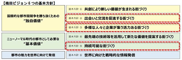 本取組みは、梅田ビジョンに掲げる基本方針(2)・(3)・(5)の街づくりを目指しています。