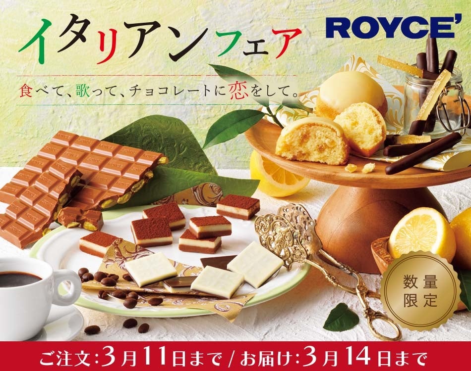 イタリアンフェアではロイズスタッフが実際に現地を訪れ、各地で出会った味や魅力にロイズのエッセンスをプラスしたチョコレートや焼き菓子が登場しています。ロイズのお菓子で、イタリアを感じるドルチェの旅を楽しみませんか。