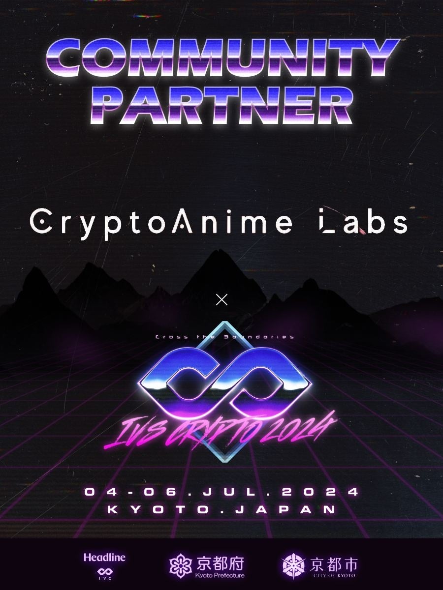 クリプトアニメラボは、「IVS2024 KYOTO / IVS Crypto 2024 KYOTO」のコミュニケーションパートナーになっています。