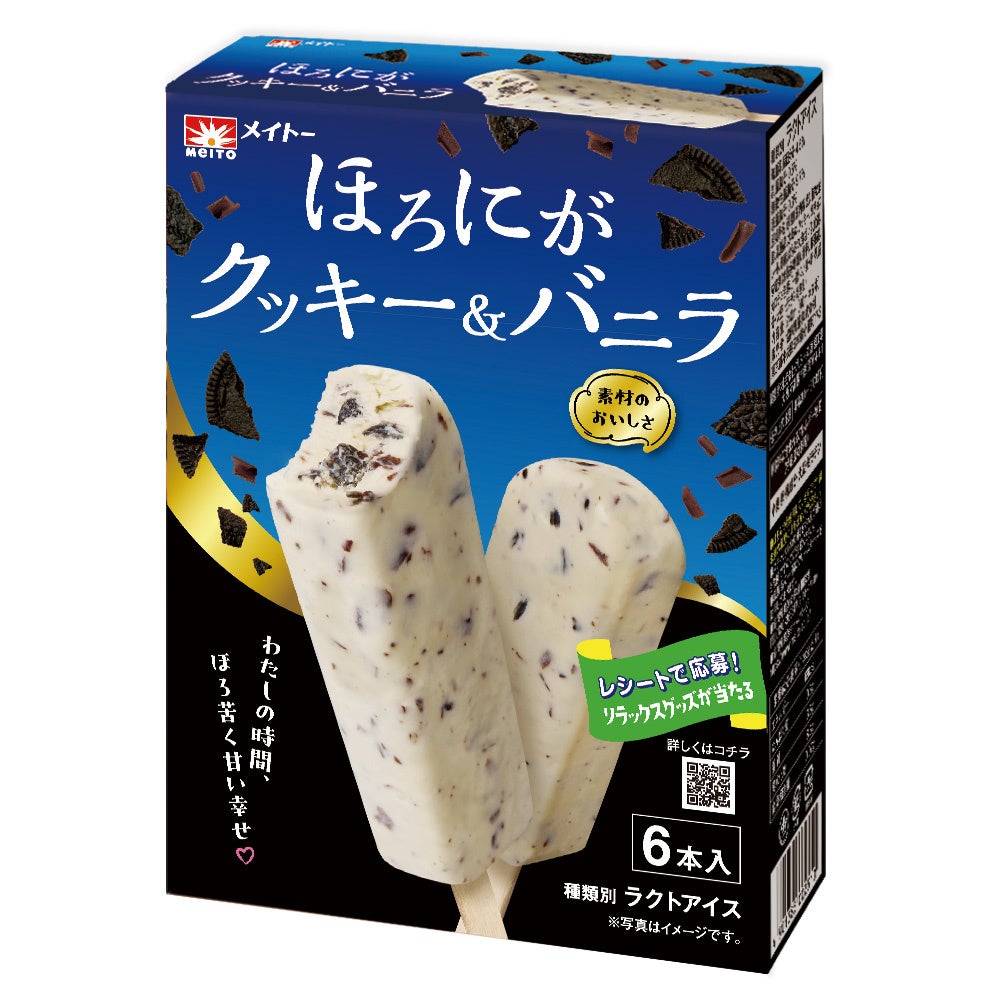 たっぷり入ったクッキーのほろ苦い味わいと、 全体に散りばめられた「チョコチップ」の プチプチ食感が癖になる、楽しいバーアイスです。