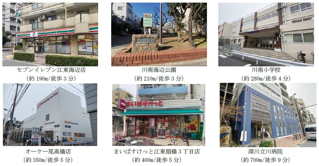 交通 : 東京メトロ半蔵門線「住吉」駅(B1出口)徒歩14分、東京メトロ東西線「東陽町」駅(4出口)徒歩18分、「千田バス停」徒歩5分