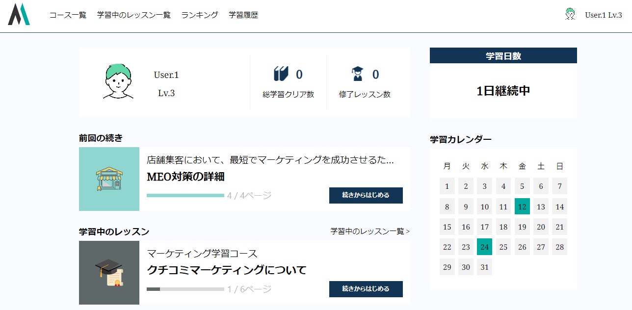 学習画面では、動画形式でGoogleビジネスプロフィールを始めとする店舗ビジネス向けのデジタルマーケティングを学習することが可能です。