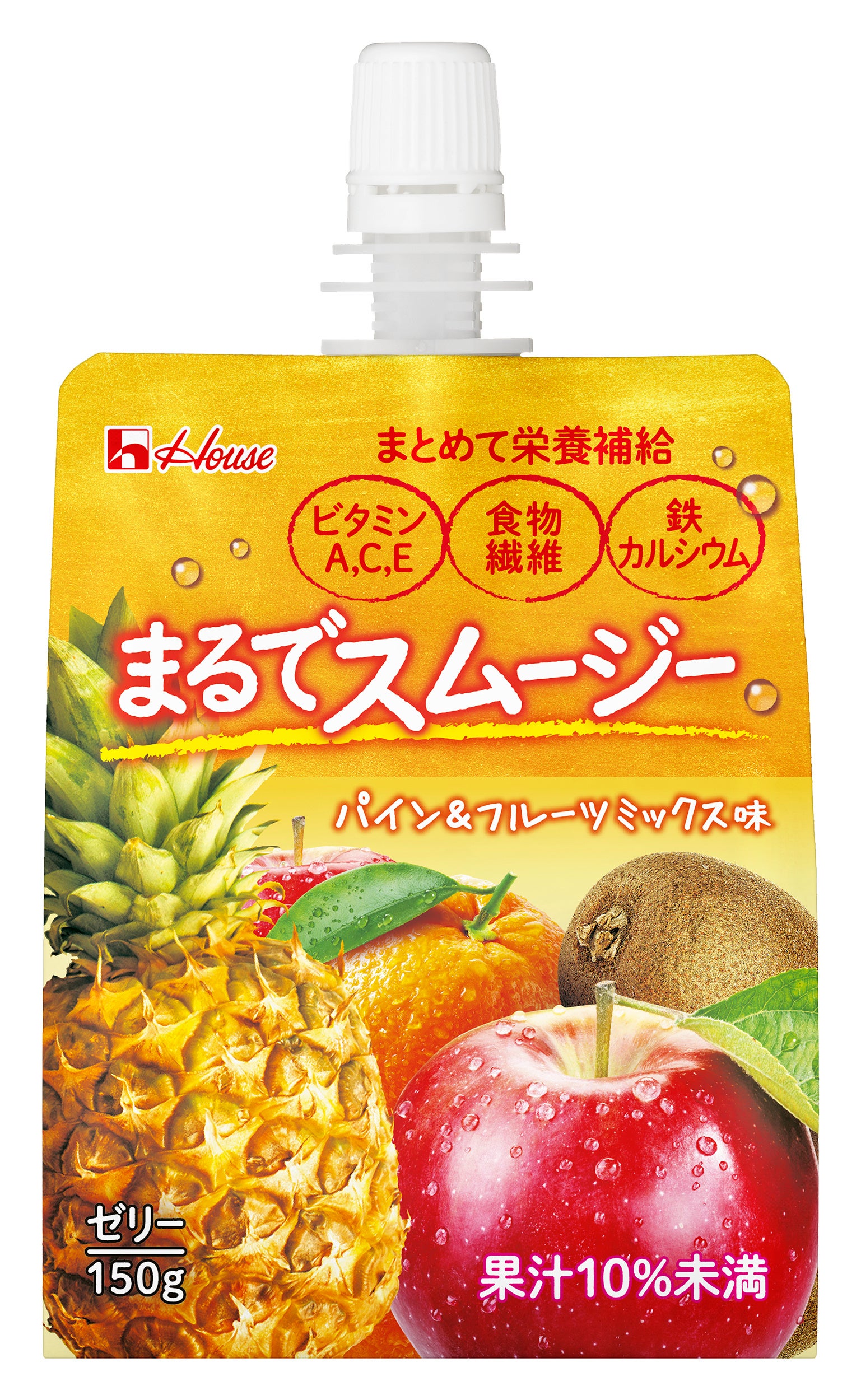 「まるでスムージー」シリーズは、朝食にプラス1品やヘルシーに小腹を満たしたい間食時に飲むことで、ビタミンA,C,E、食物繊維、鉄、カルシウムを手軽にまとめて補給できる栄養サポートゼリー飲料です。本製品を通じて、おいしさを楽しみながら充実した毎日を過ごしたい方々の“キレイや健康”をサポートしてまいります。内容量150g、税別希望小売価格190円。