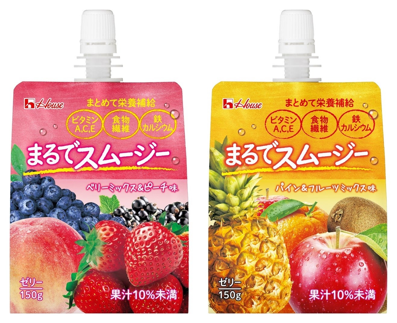 ハウスウェルネスフーズは、スムージーのようなおいしさが味わえるゼリー飲料の新シリーズとして、「まるでスムージー」 <ベリーミックス&ピーチ味><パイン&フルーツミックス味>を、3月14日より全国で発売します。
