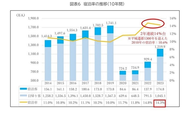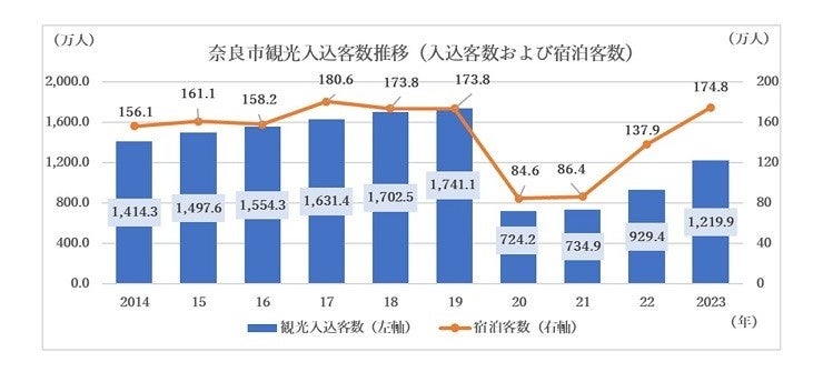 宿泊客数がコロナ前の2019年超えの174.8万人!(2019年比1万人増)2023年 奈良市観光入込客数調査について