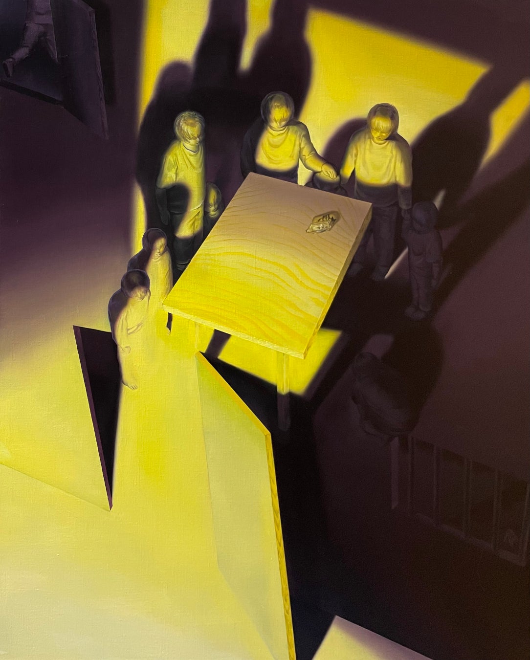 田崎の社会問題を取材して光と影を描くというこれまでの作風を踏まえつつ、本展ではより深い内面や自我に目を向けた新作を制作し、展示いたします。