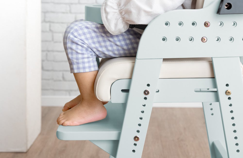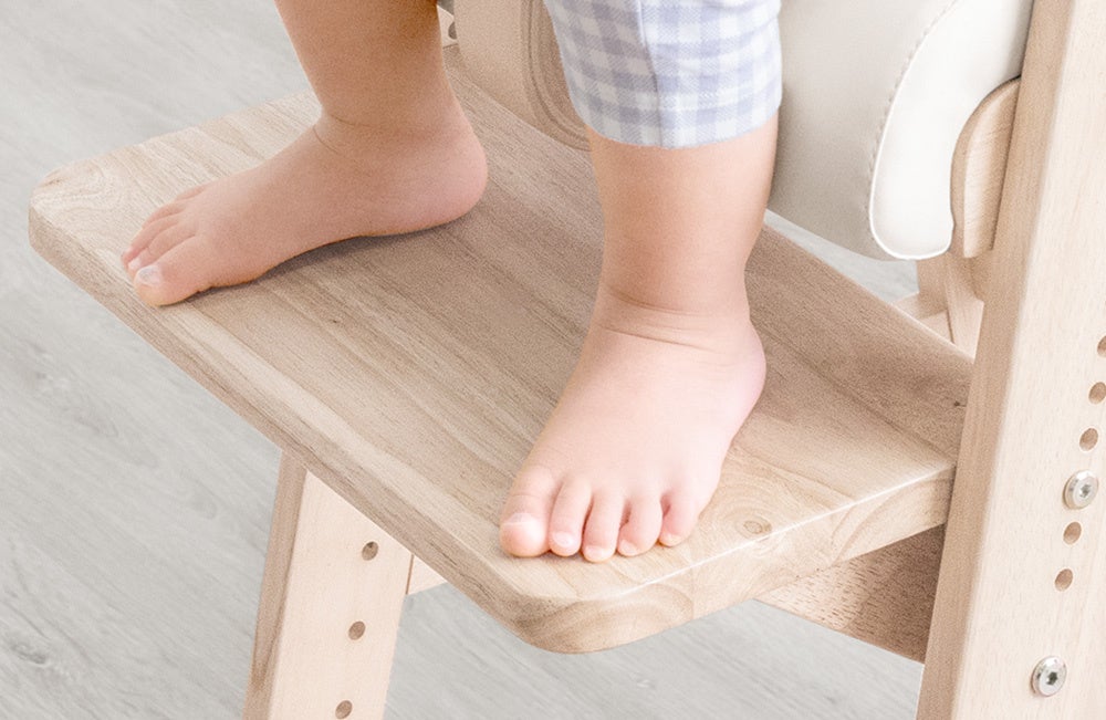 また、足置き部分は幅約30cmのゆとりあるサイズでお子さまが自然に足を置ける高さに設計されており、足がぶらつきにくいため、安定した姿勢を保ちやすいところもポイントです。