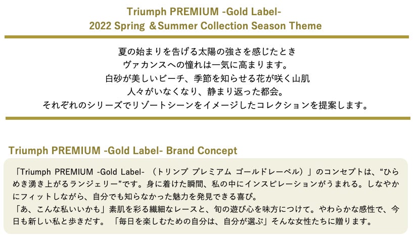 今シーズンは ランジェリーで魅惑のヴァカンスへ。『Triumph PREMIUM -Gold Label- (トリンプ プレミアム ゴールドレーベル)』2022年春夏コレクション登場