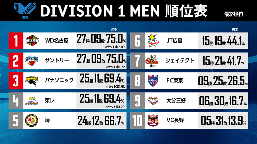 【バレー/Vリーグ】V1男女共にV・レギュラーラウンドが終了!女子・久光と男子・パナソニックは自力でファイナルステージの最後の出場枠を手にした