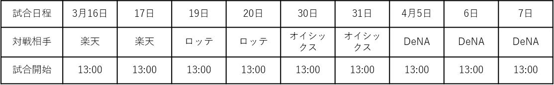 ※開場時間:土日祝日は試合開始3時間前、平日は試合開始2時間前
