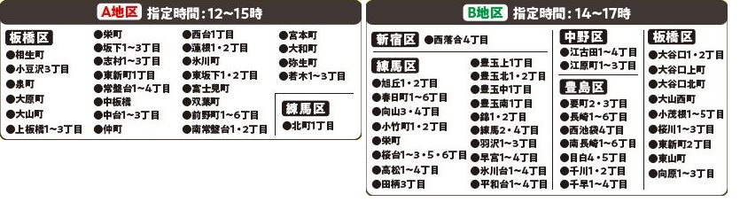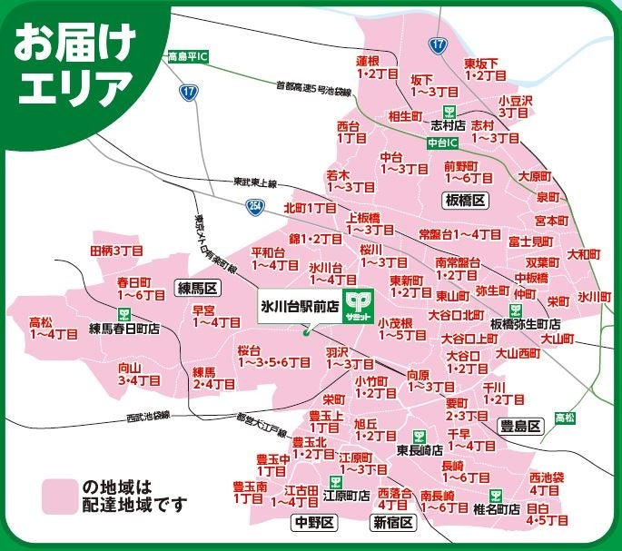 お届けエリア(練馬区、板橋区、豊島区、中野区、新宿区の以下の地域)