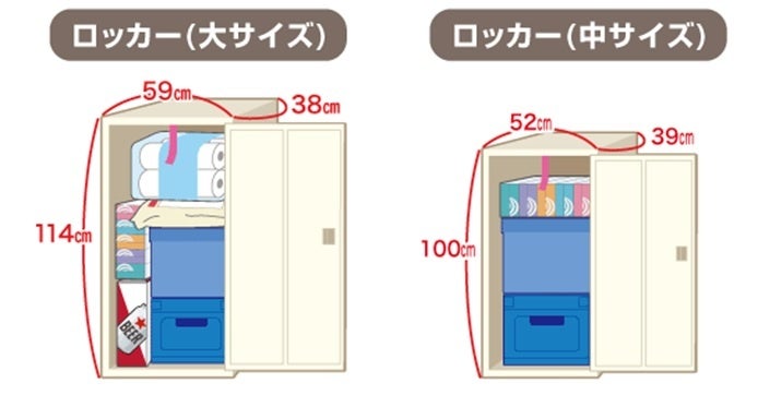 鍵付きロッカーの大きさは以下の2種類からお選びいただけます。
