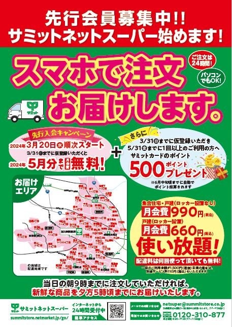 サミットストア氷川台駅前店は、2024年3月20日(水)より、「サミットネットスーパー」を開始します。