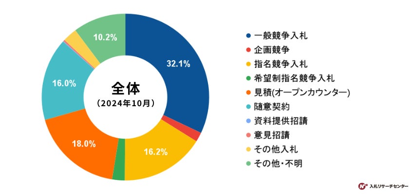 入札形式別の公示案件割合を見ると、「一般競争入札」が32.1%と最も多い結果となりました。