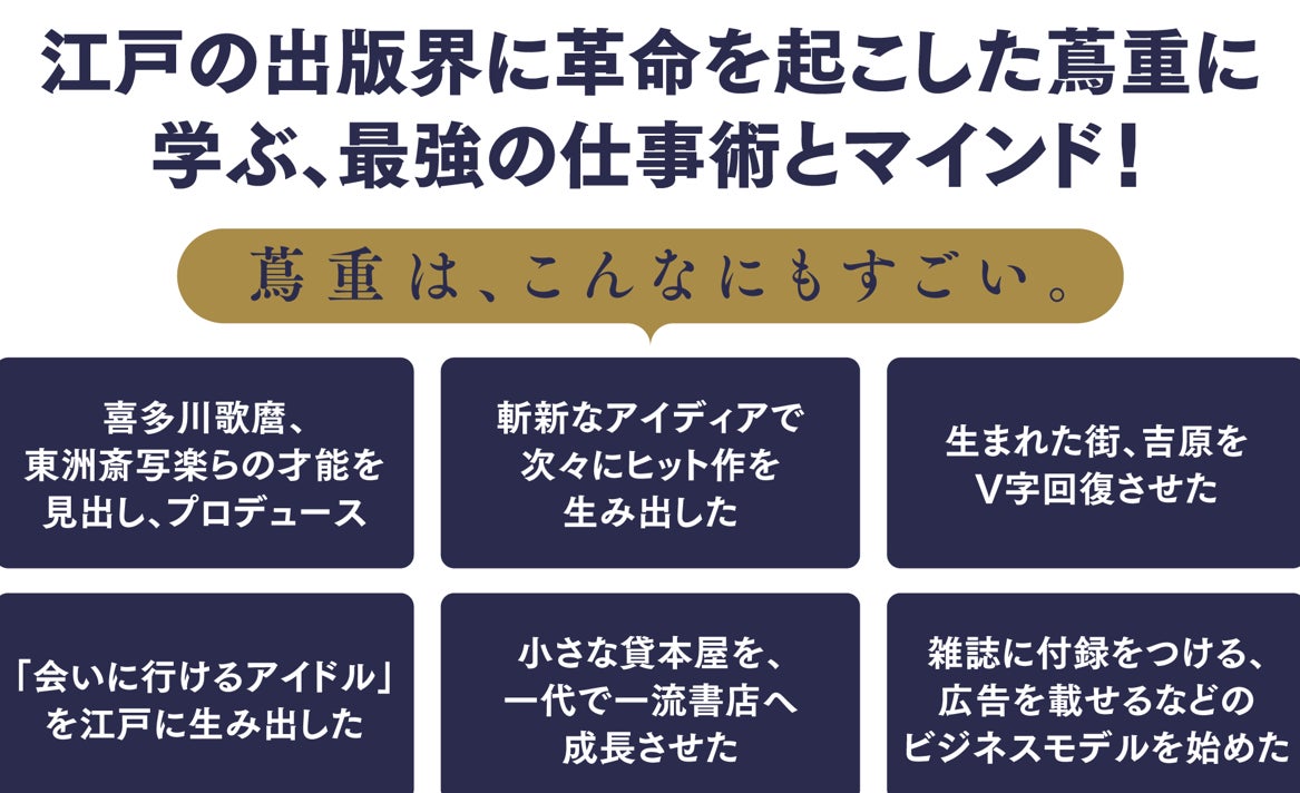 そんなあなたの心に、蔦重からの時空を超えたメッセージが、鮮やかに響き渡る一冊です。
