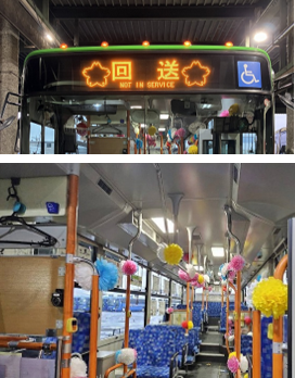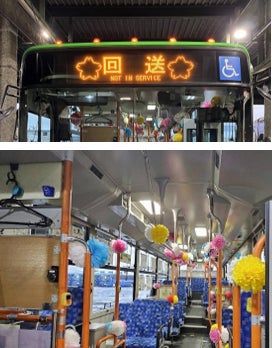 3月1日~3月31日まで門出を祝う言葉にあふれたバスが街を走ります ハンカチを持ってご乗車ください