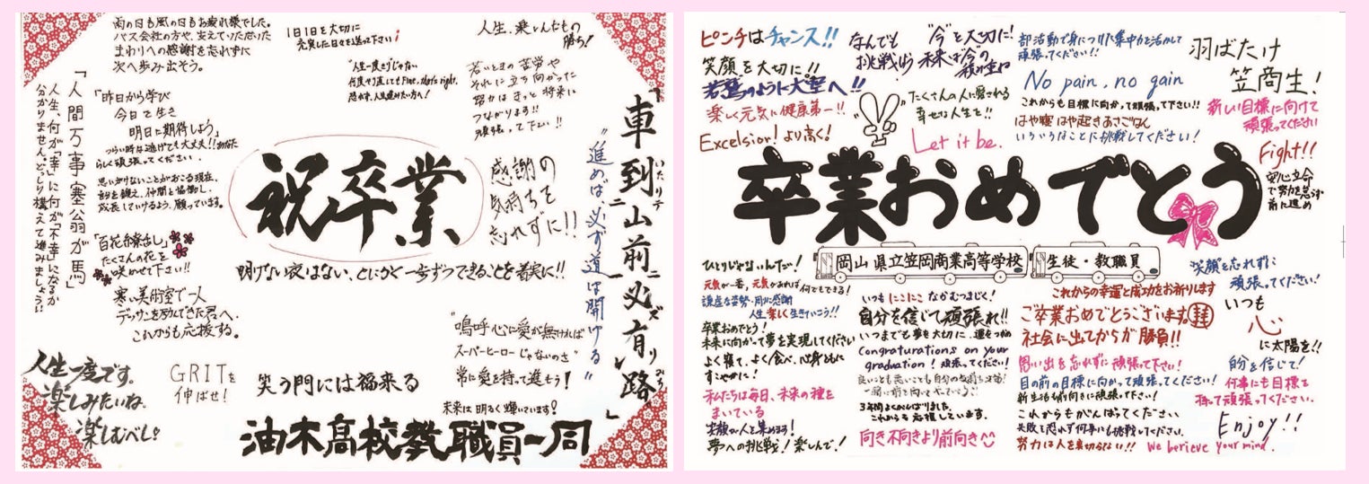 贈る言葉を書いた寄せ書きポスターをバス車内に掲載いたします。
