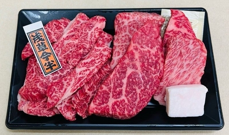1895年創業のすき焼き割烹「浅草今半」の国産黒毛和牛カットステーキと焼肉用切落しのセットです。国産黒毛和牛のステーキと焼肉の食べ比べが楽しめます。