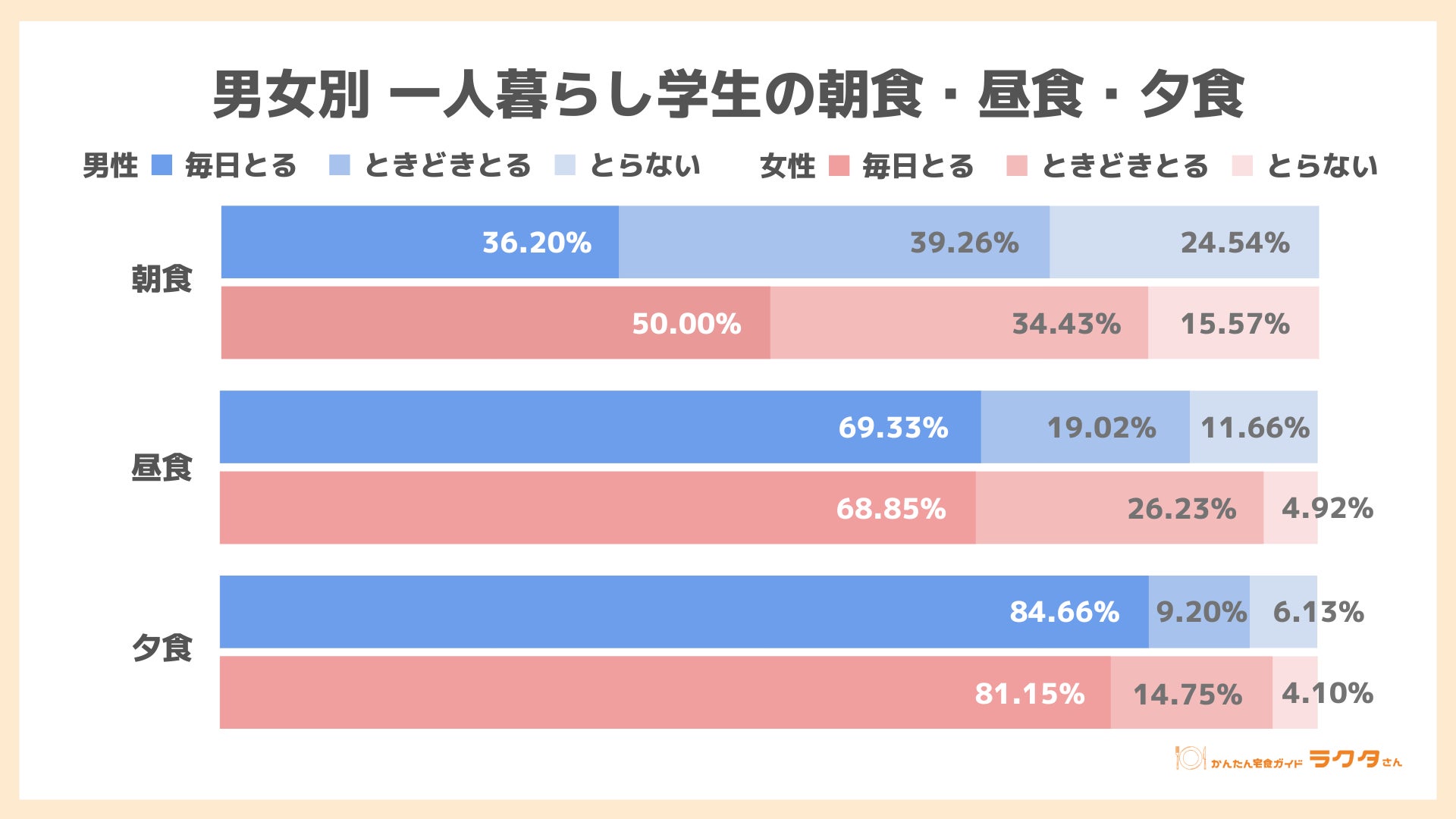 ■一人暮らしの学生は男性の方が「食事を摂らない」傾向