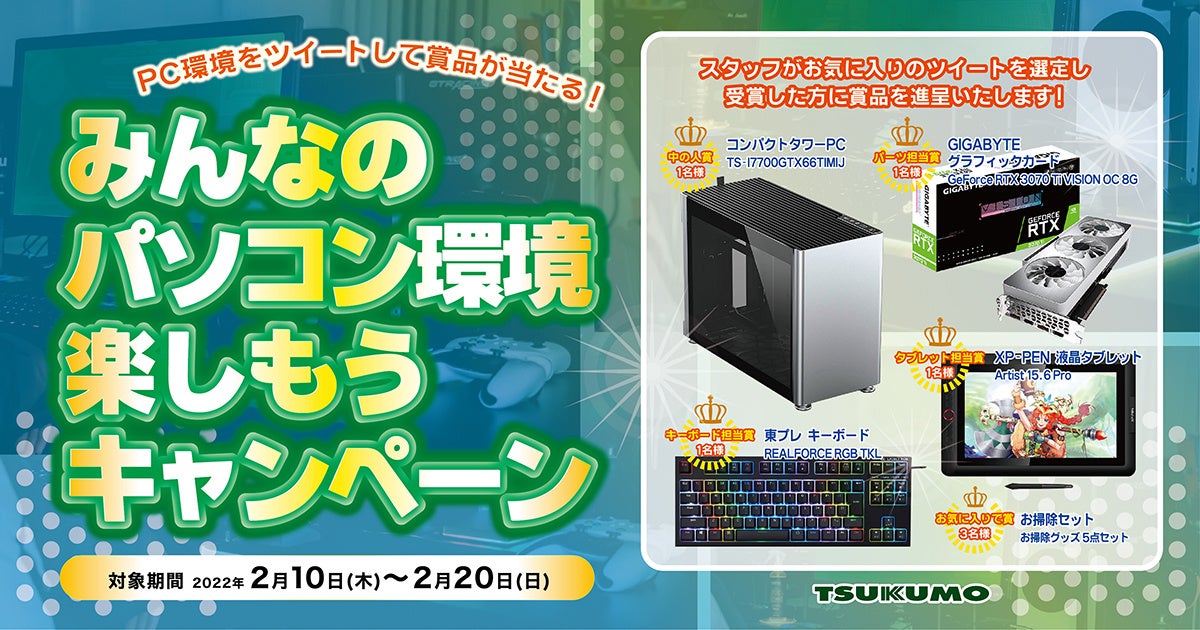 【Twitter投稿キャンペーン】TSUKUMO、PC環境をツイートして賞品が当たる、「みんなのパソコン環境楽しもう」キャンペーン開催中!