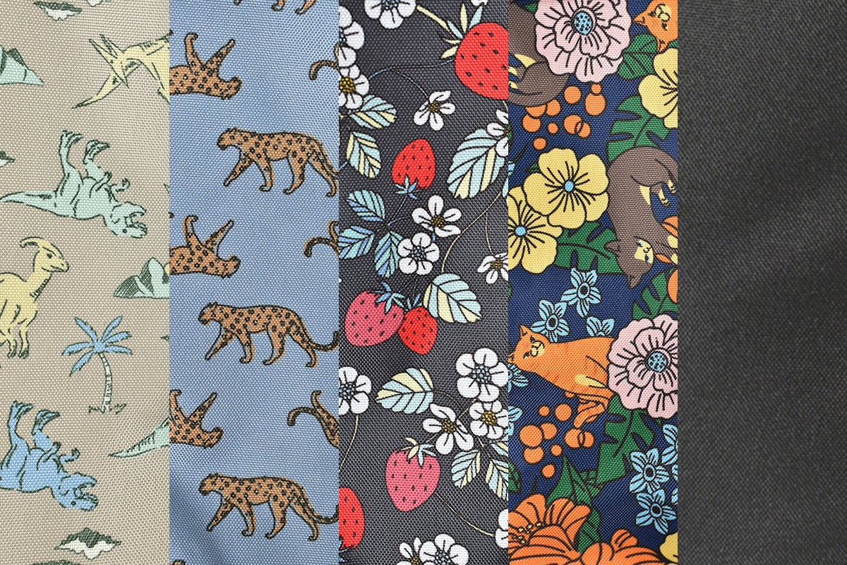 (左→右)ダイナソーBE/レオパードBL/ストロベリーCH/フラワーキャット/ブラック