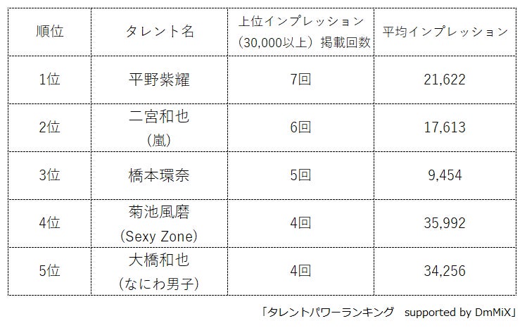「タレントパワーランキング supported by DmMiX」である旨を明記