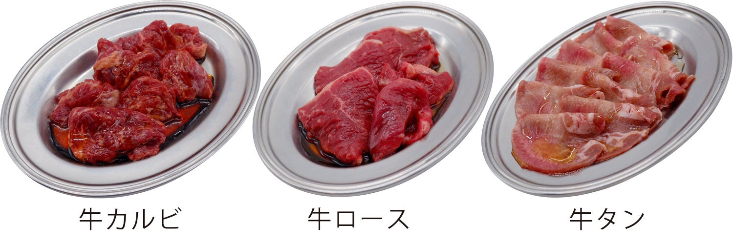 牛カルビ・牛ロース・豚カルビ・豚ロース・鶏カルビ・鶏ロースといった人気の定番焼肉メニューを追加してパワーアップ!!