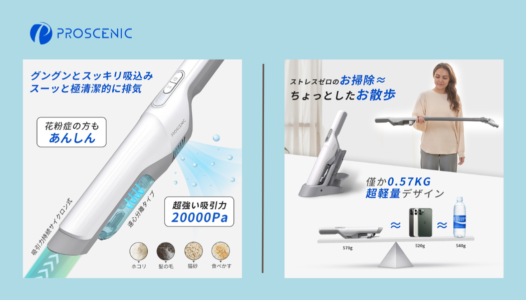 Proscenicは、「賢くて快適な暮らし」をコンセプトとしたスマート掃除機やロボット掃除機などの研究開発を行うグローバル企業です。単に価格を下げるのではなく、コストパフォーマンスを重視して価格と機能のベストなバランスを日々追求しております。Proscenicのユーザーは5万人を突破。今後もお客様の生活をより良くする製品の開発に尽力してまいります。