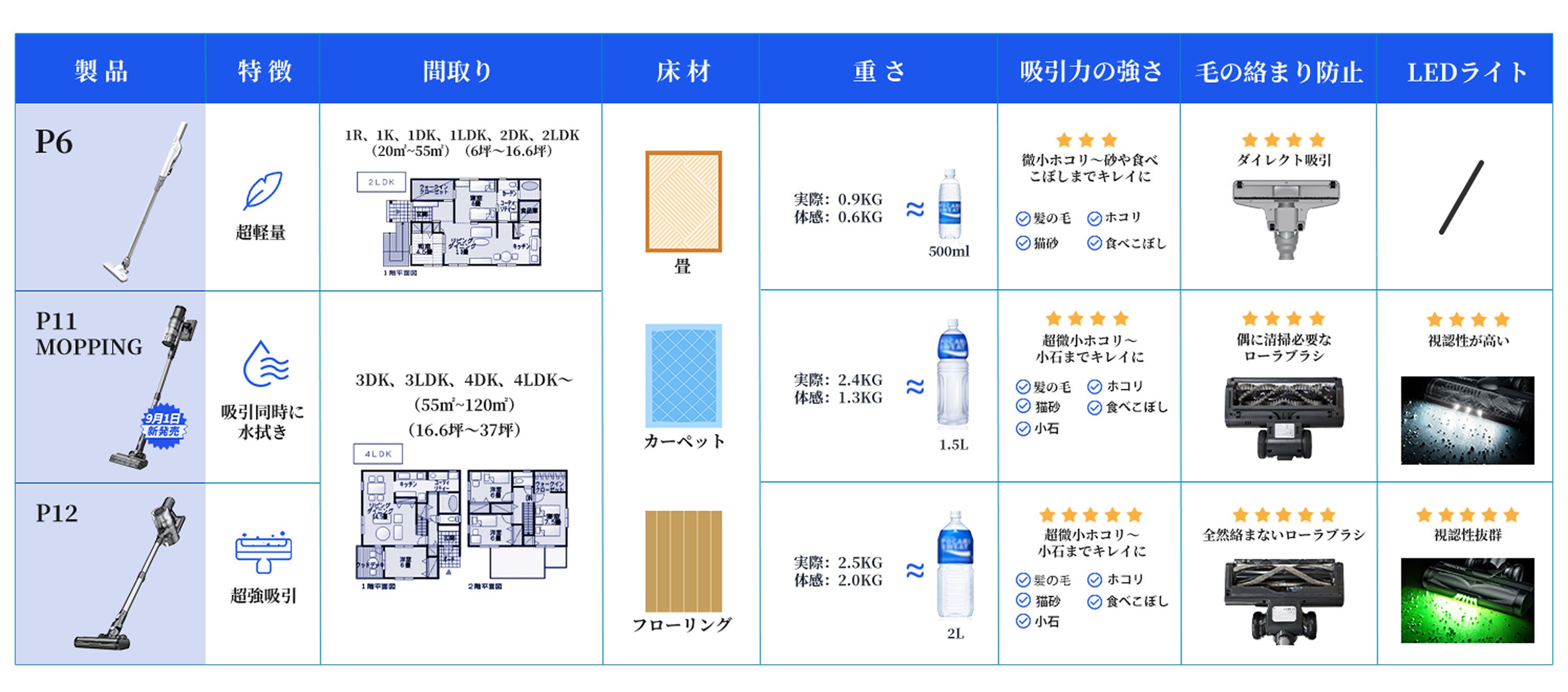 超軽量のコードレス掃除機です。本体は500mlペットボトル水に相当な重量ですので、格別で驚きの軽さを実現して、お掃除は時短で軽快になりました。