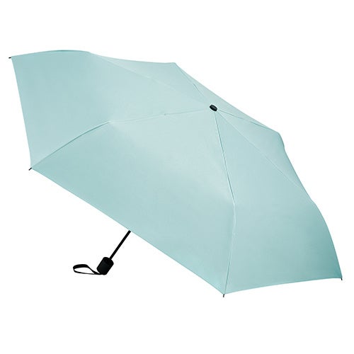素材にはペットボトルを再生した再生ポリエステル生地を使用し、プラスチック素材を削減したバンブーファイバー素材混合の持ち手を使用した環境に配慮した晴雨兼用傘。