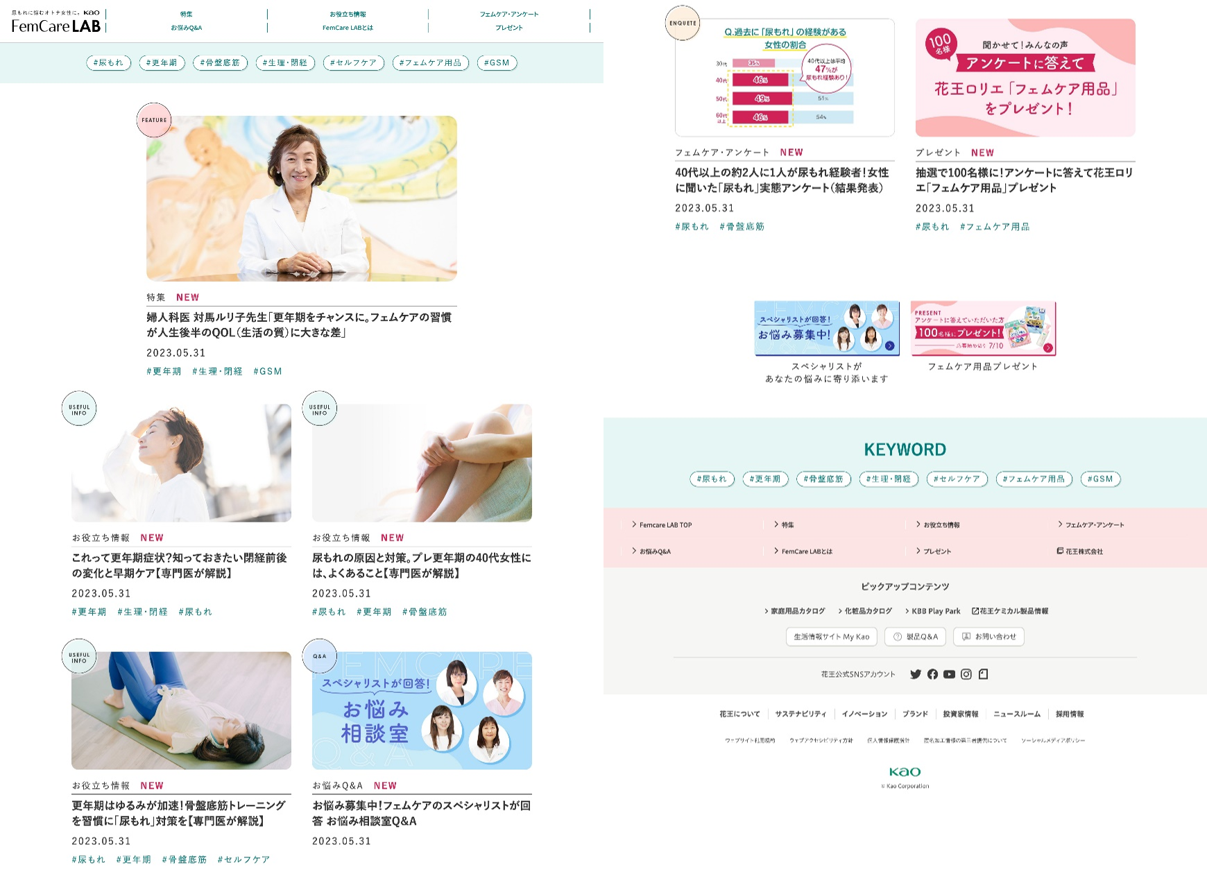 花王、医師・専門家監修の尿もれ総合情報サイト「FemCare LAB」を公開
