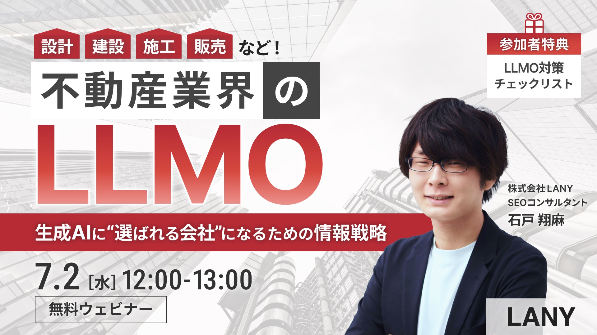 【無料ウェビナー】不動産業界のLLMO -生成AIに“選ばれる会社”になるための情報戦略-を7/2(水)に開催