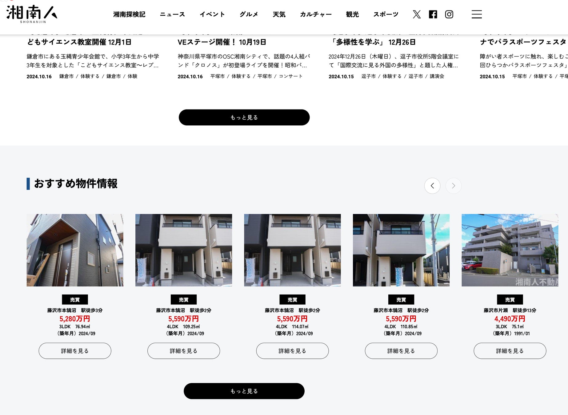 湘南エリア最大級のニュースサイト「湘南人」(運営会社:株式会社ジーン)は「湘南人不動産」のおすすめ物件情報を配信開始しました。