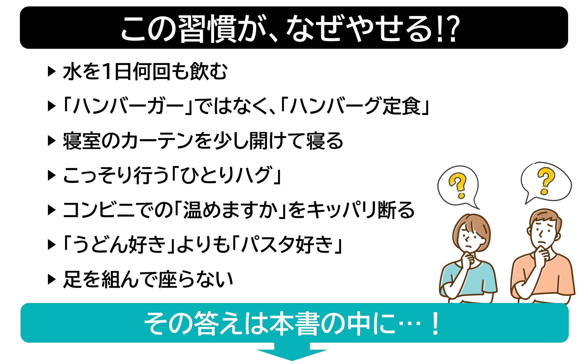 食べ方、メンタル、睡眠、ケア、運動、考え方、動作…この習慣がなぜやせる!?