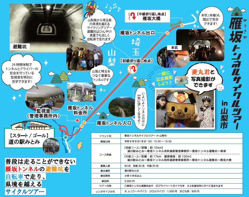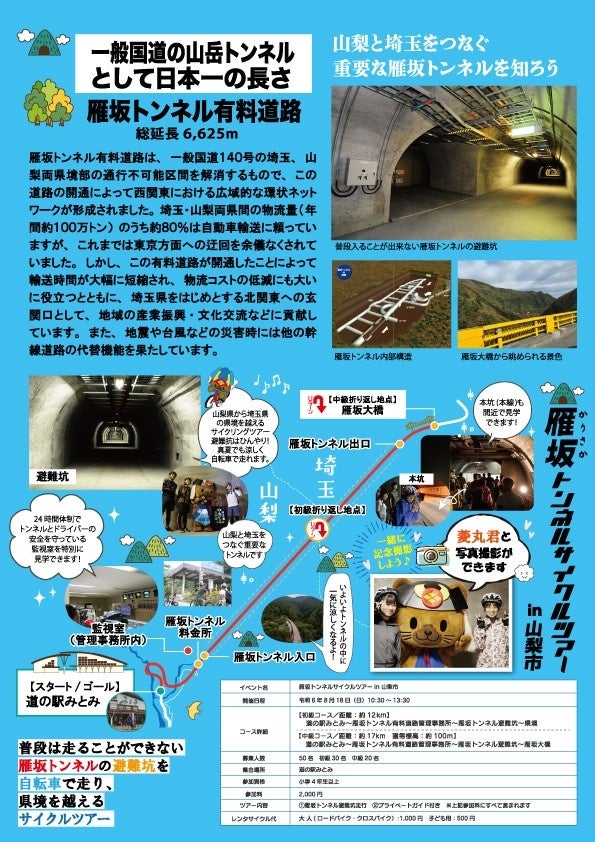 ~普段は走ることができない雁坂トンネルの避難坑を自転車で走り、県境を越えるサイクルツアー~