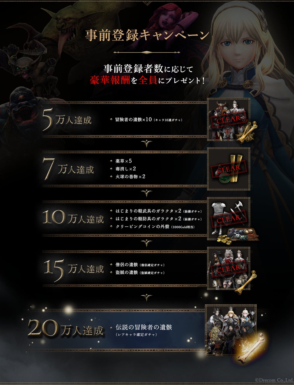 事前登録期間中の登録数に応じて、仲間や装備、特別なアイテムなど、ゲーム内で使用できる豪華報酬を全員にプレゼントするキャンペーンを開始!