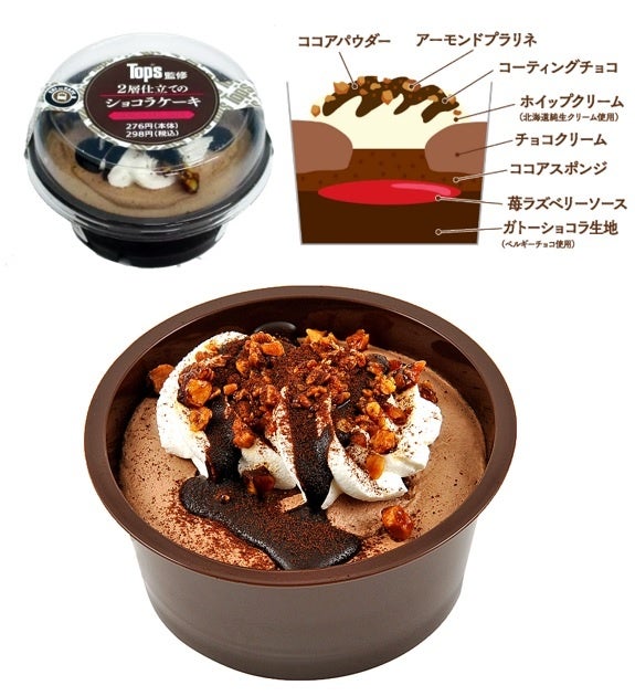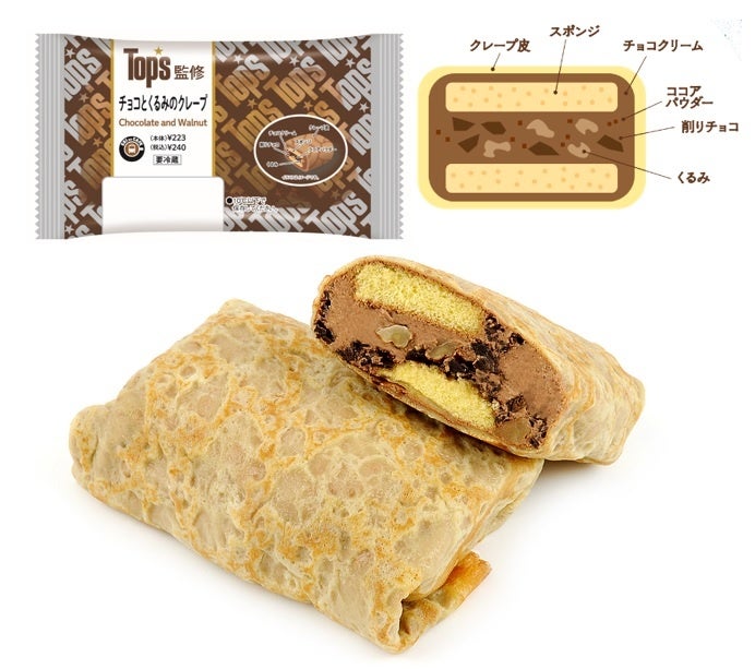 ●今回のコラボでは、Top’sを代表するチョコレートケーキをイメージしたクレープ「チョコとくるみのクレープ」と、濃厚で贅沢な味わいの「2層仕立てのショコラケーキ」の2商品を発売いたします。人気洋菓子店の味を手軽にお楽しみいただける、バレンタインデースイーツとしてもおすすめの商品です。