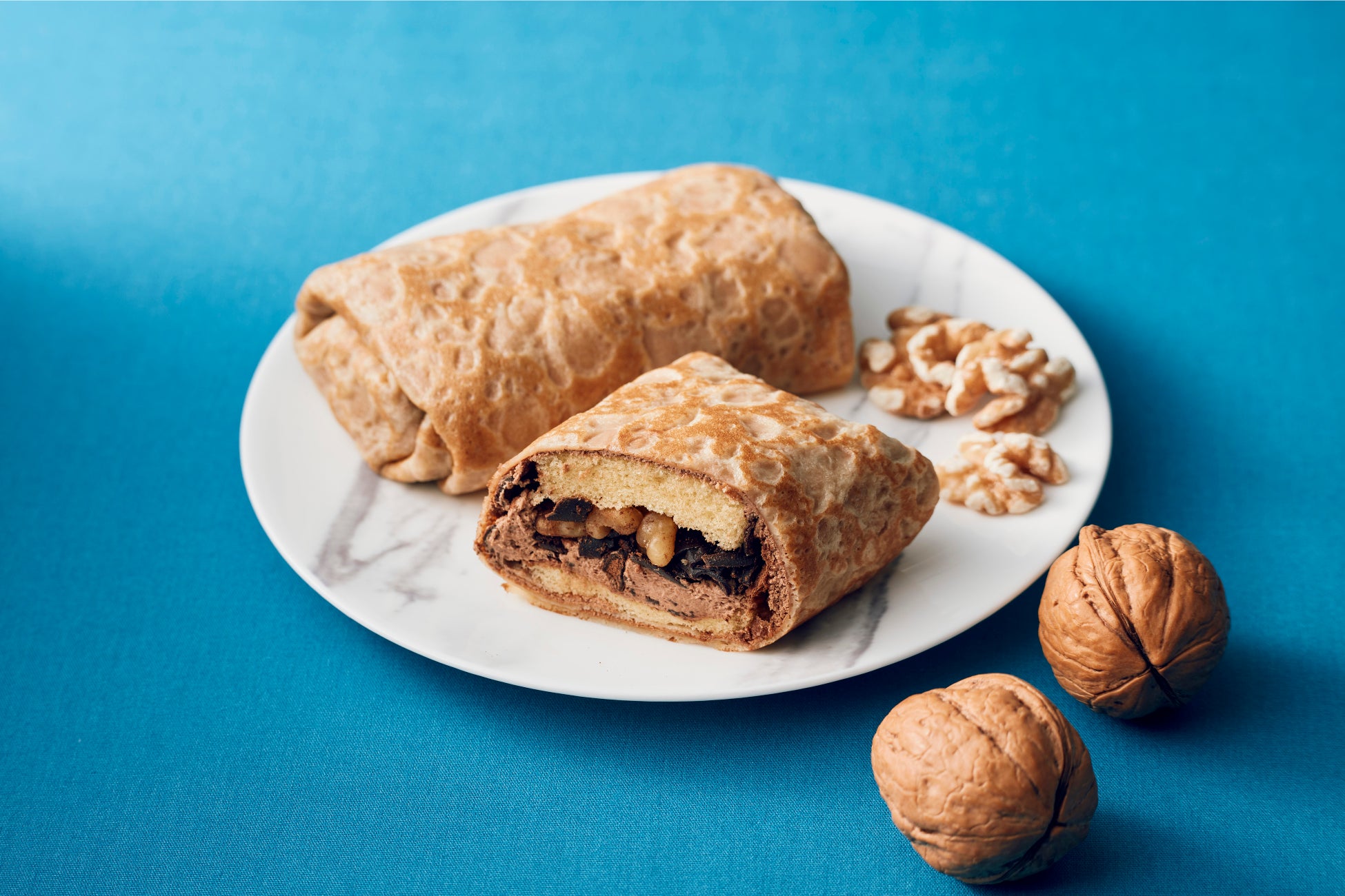 Top’sの人気商品「チョコレートケーキ」をイメージし、チョコクリームとくるみをスポンジとあわせてクレープ生地で包みました。一口目からまさに Top’s !!を感じていただける味わいでありながら、削りチョコとココアパウダーをコクと食感のアクセントに加えることで、最後の一口まで美味しいクレープに仕上げました。