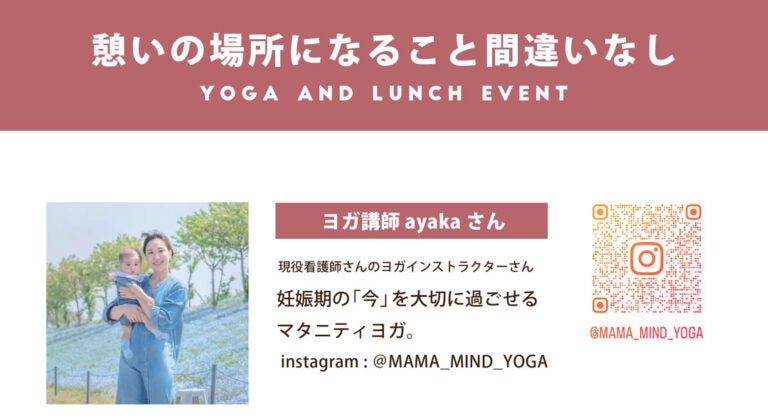 マタニティヨガランチ交流会で心も身体もリフレッシュ。現役看護師のヨガインストラクターと助産師が滞在。南大阪の滞在型エンターテインメントモールWHATAWONで11月22(金)開催、ランチ付き!