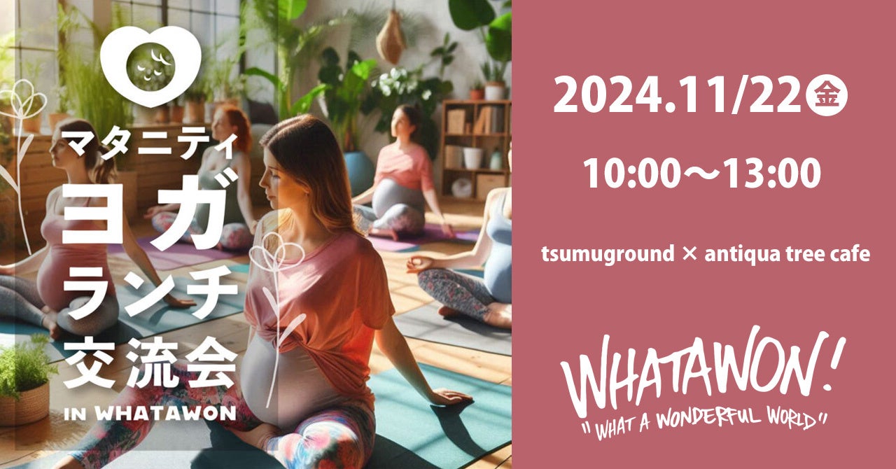 株式会社antiqua(本社:大阪府和泉市)が手がける南大阪の滞在型エンターテインメントモール「WHATAWON」で、現役看護師のインストラクターが講師を務めるヨガレッスン『マタニティヨガランチ交流会』が開催されます。妊娠中のママが安心してリラックスしながら心と体をリフレッシュできるイベントとなっております。たくさんのご参加をお待ちしております。