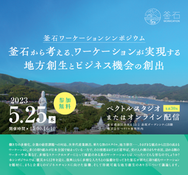 岩手県釜石市(市長︓野田 武則、以下︓「釜石市」)、株式会社かまいし DMC(本社︓岩手県釜石市、代表取締役︓河東 英宜、以下:「かまいし DMC」)、日鉄興和不動産株式会社(本社︓東京都港区、代表取締役社長︓三輪 正浩、以下︓「日鉄興和不動産」)、株式会社オカムラ(本社:神奈川県横浜市、代表取締役 社長執行役員:中村 雅行、以下:「オカムラ」)の4者は、2023年5月25日(木)、 “岩手県釜石市におけるワーケーション事業”に関するシンポジウム「釜石から考える、ワーケーションが実現する地方創生とビジネス機会の創出」を、ベクトルスタジオ(東京都港区)のリアル会場およびオンラインで開催いたします。